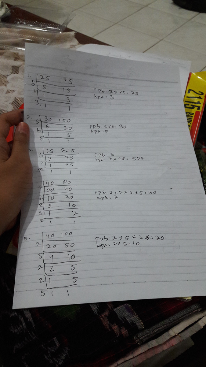 Faktor 14 = 1, 2, 7, 14. 80 = 2 4 x 5. Fpb dari 60 dan 75 adalah 3×5 = 15. Karena sebagian rumus matematika sudah pernah diajarkan kepada kita dan juga bisa dipelajari bagaimana cara mengerjakannya. Mencari fpb (faktor persekutuan terbesar) untuk mencari fpb kita masih memerlukan pemfaktoran prima, caranya.